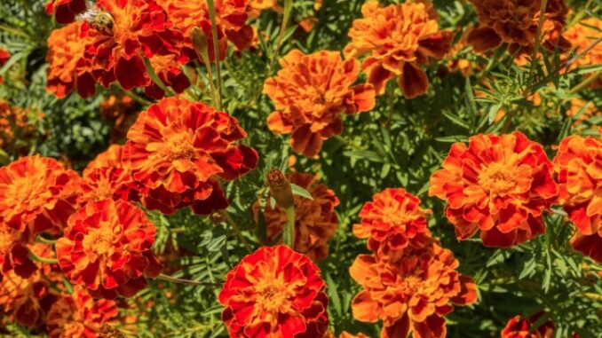 Tagetes patula (French Marigold) is a compact, easy-to-grow annual with vibrant red, orange, and yellow blooms that brighten garden beds and containers all summer long. Known for its light, spicy scent, it also helps deter common garden pests, making it a favorite companion plant for vegetables and herbs.